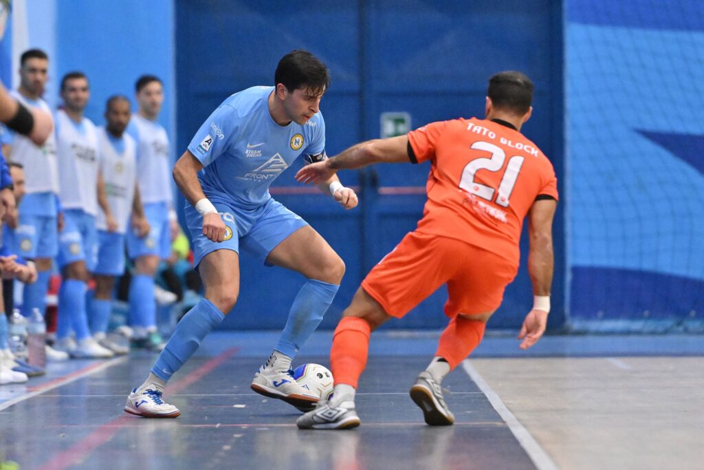 LA PARTITA. Ancora indisponibile Chino, Angelini deve rinunciare agli squalificati Bolo e Salas e schiera nel primo quintetto proprio Bellobuono, capitan Perugino, Guilhermao, Borruto e Bortoletto. Prima chance per il 2001 ex Piast Gliwice dalla distanza, dall’altra parte Ferretti spedisce fuori da due passi. Sempre Bortoletto pericoloso, Perez gli sbarra la strada ed il portiere della Nazionale fa lo stesso su Amans. Ci prova Perugino, largo però il sinistro dopo la combinazione con Guilhermao. Il goal è nell’aria e lo segna Grasso dopo un primo tentativo in diagonale: l’ex di turno è il più lesto a mettere dentro una ribattuta dopo un corner a 9’51” per l’1-0. Altra chance per il capitano, più tardi a 6’37” dalla prima sirena la punizione vincente di Canabarro per il 2-0. Triangolo tra il Carucha, Guilhermao e Bortoletto con quest’ultimo nuovamente insidioso. Bellobuono, superlativo sulla conclusione ravvicinata di Degan, manda le compagini al riposo sul 2-0.